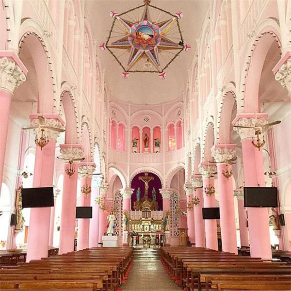 來胡志明市,一定要來少女心爆炸的粉紅教堂打卡,這是一座天主教教堂,粉紅色的外觀好像一座公主城堡,吸引了很多外國人前來朝聖,尤其女生來到這裡一定會失心瘋,拍照拍到到停不下來。