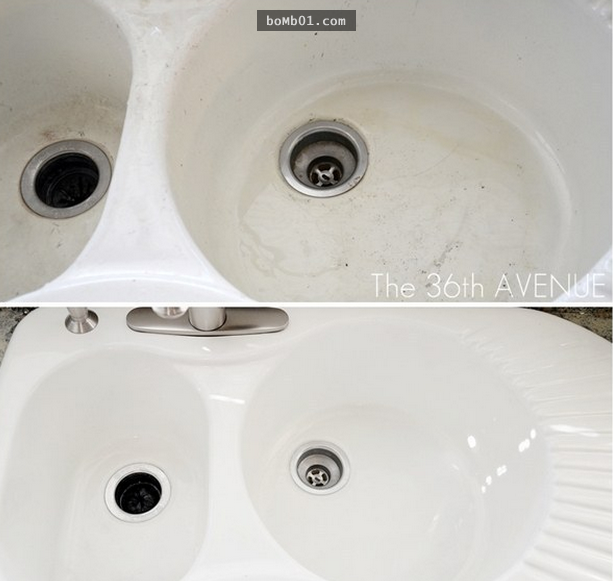 ▼5. 瓷水槽髒兮兮?拿出菜瓜布和清潔劑便可搞定!