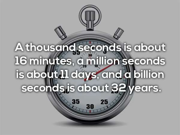 ▼1000秒是16分鐘,100萬秒是11天,10億秒鐘大概只有32年。