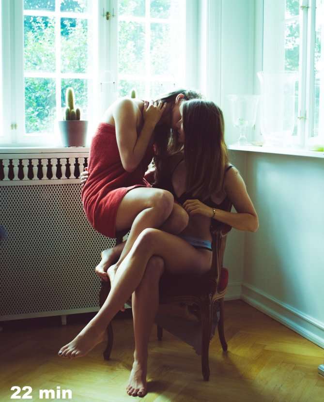 ▼照片左下角的數字,代表著Hyld與陌生人拍攝前相處的時間。她認為社群網站讓人與人的距離越來越遠,人們很少面對面溝通。不過她反應這一問題的作品,就是利用Tinder完成的,真是非常諷刺。