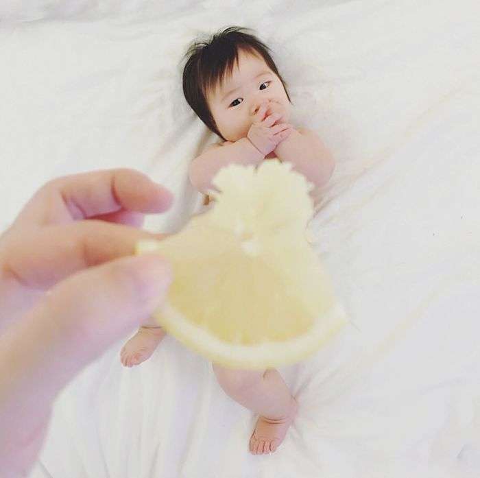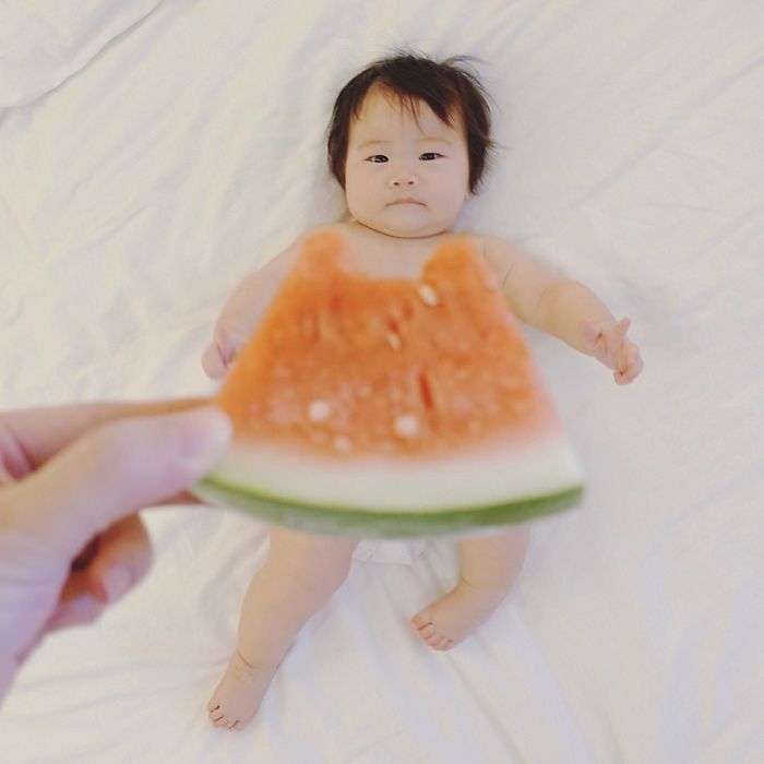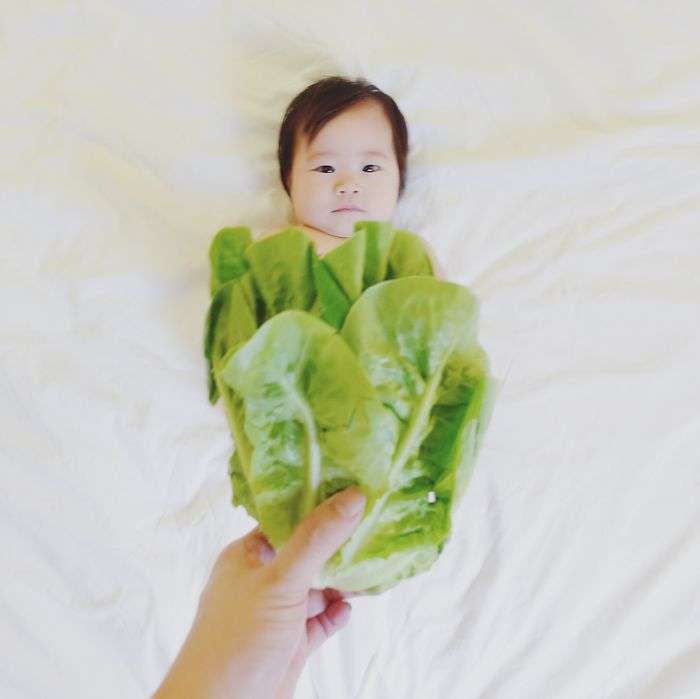 國外一名網友將各種水果、蔬菜和食物當做蔬菜,為她的小孩拍攝了「新衣照」,得到了非常熱淚的反應!一起來看看她為小孩打扮的樣子吧: