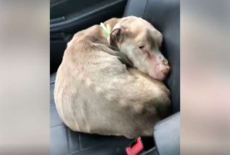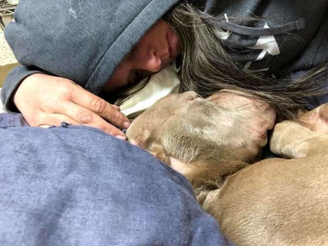 ▼這大概是Watson第一次在愛牠的人懷裡入睡。第二天醒來後,牠看起來更加疲憊,不吃不喝,慢慢繞圈踱步。不久之後,這隻沒有享受過多少溫暖的狗狗就去世了。