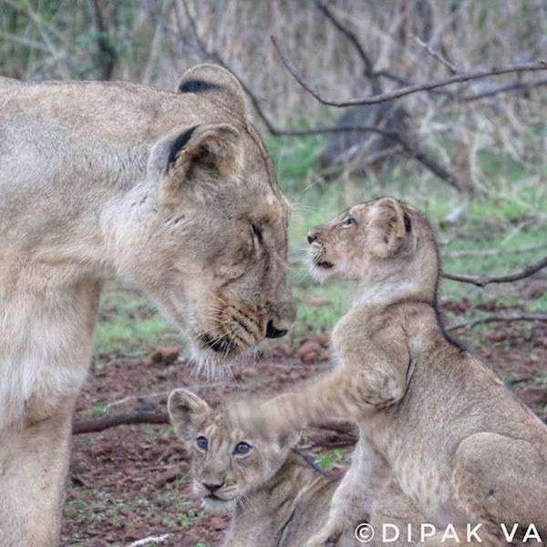▼Ahir說,另外兩隻小獅子就依序坐在母親後面,「我不想錯過這個機會,就趕緊拍了下來。」這長可愛的全家福也在網上大為流傳,萌化不少人的心。