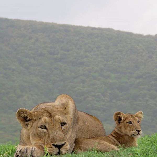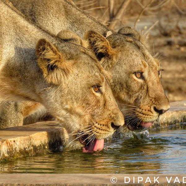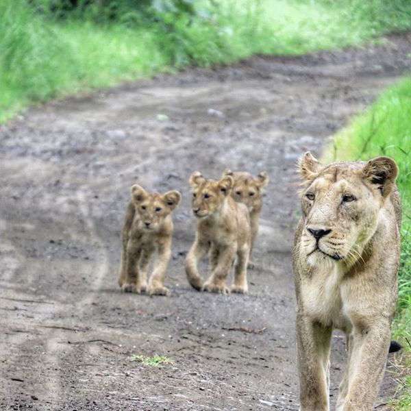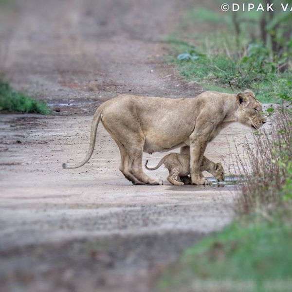 ▼28歲的攝影師Ahir Deepak Vadher經常在印度的野生森林公園拍攝動物照片,去年11月,他難得拍到獅子的全家福,「在車道上,有5隻獅子在閒晃。一隻小獅子走來坐在我旁邊,牠的母親則坐在牠身後。」