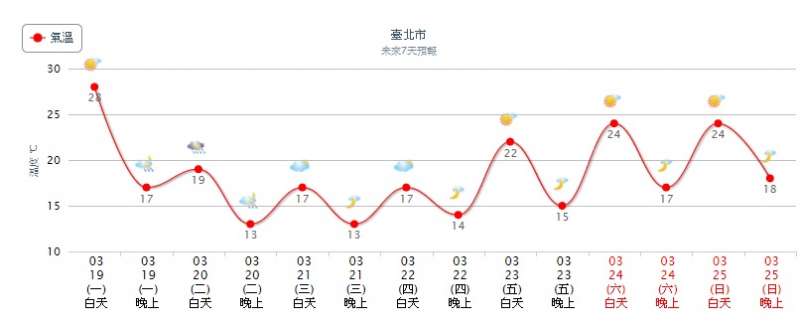 2018年03月19日最近天氣非常好,是不是非常有春天的感覺了呢?不過氣象局表示,週二(20日)將會有冷鋒過境,各地有陣雨或雷雨導致氣溫下降越晚越冷。週四(22日)受大陸冷氣團南下所影響,中部以北低溫下探11度,日本氣象協會更預估台北低溫恐「只剩8度!」