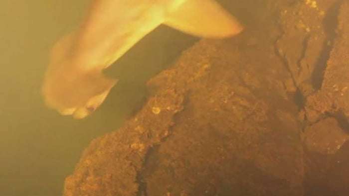 ▼研究團隊想在当地研究热液活动,並在火山口边缘搜集火山的化学成分、地理与生物资讯。不過火山附近的海水高温又高酸性,他們只能透过机器人和水下摄影机来搜集资料。沒想到水下攝影機拍攝到了驚人的畫面。