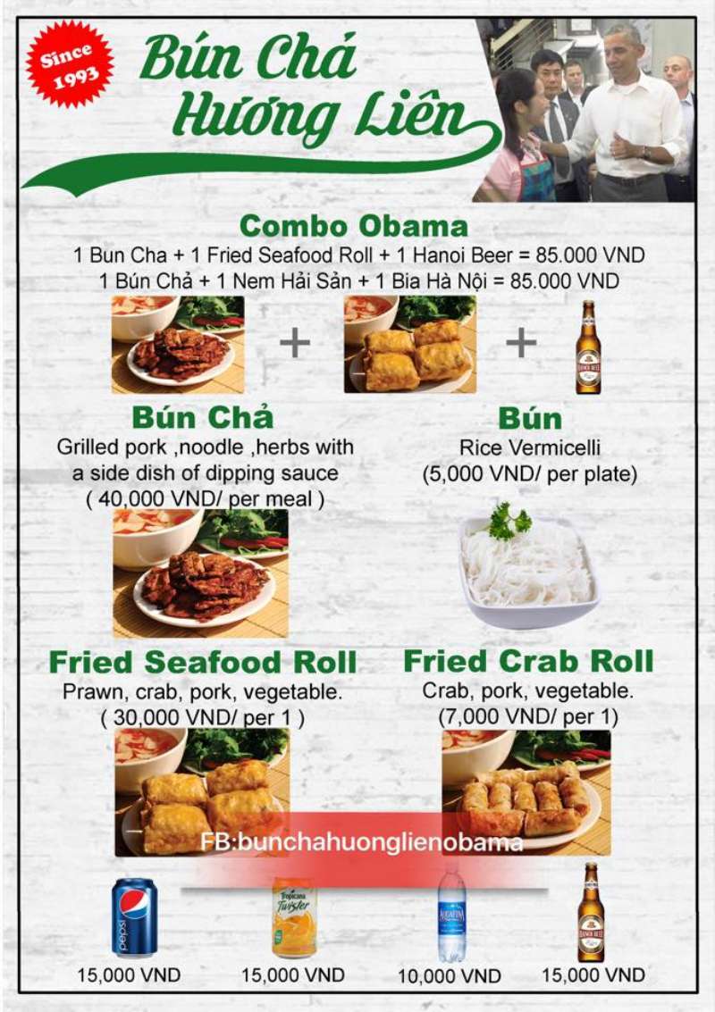 2016年時任美國總統歐巴馬到越南參訪,和名廚安東尼波登一起到河內的一家越南小吃店用餐,照片被刊登上社群網站之後引起網友熱烈的討論。店家也將歐巴馬和波登使用過的桌椅、碗筷甚至啤酒瓶都封存起來,讓觀光客前來「朝聖」。