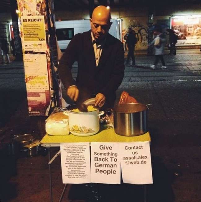 ▼敘利亞難民在街上免費派發食物給無家可歸的德國人,讓自己能夠回饋社會。
