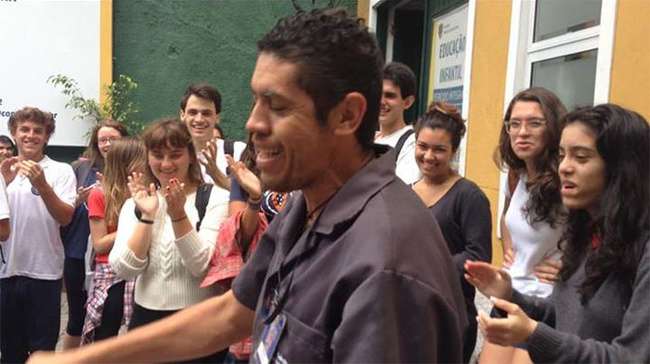 ▼這名清潔工是著名合唱團「嗆辣紅椒」的超級粉絲,可是他無法負擔高昂的演唱會票價,於是學生們籌錢為他買了一張門票。