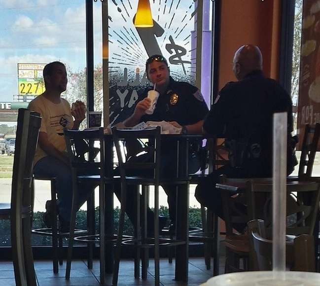 ▼兩名警察為一名行動不便的男子購買午餐。