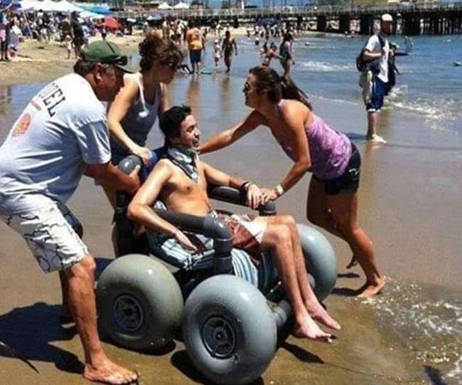 ▼這家人為行動不便的孩子做了個特別的輪椅,讓他能夠感受海洋。