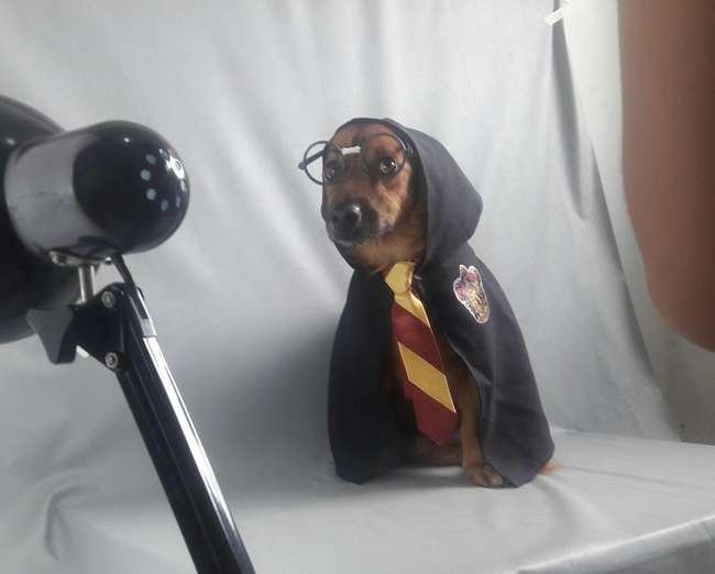 ▼為了讓狗狗更加容易被領養,動物收容所想出了這個拍照的方法。