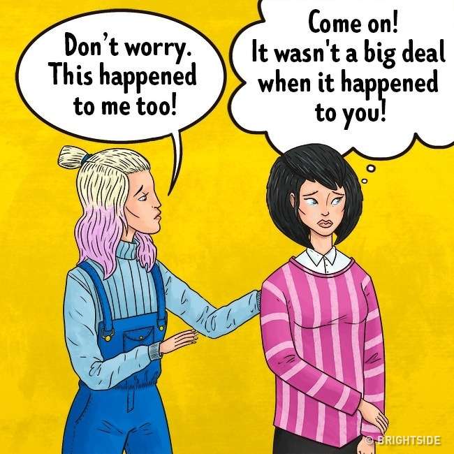 「別擔心,我也遇到過這種事啊。」「算了吧,發生在你身上的事沒什麼大不了的。」