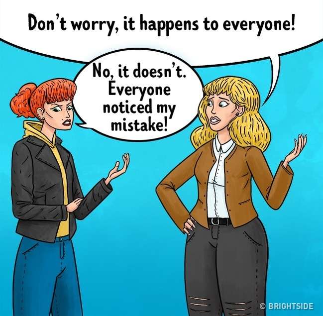 「不要擔心,每個人都可能遇到這樣的問題!」「不是的,每個人都注意到我犯錯了。」