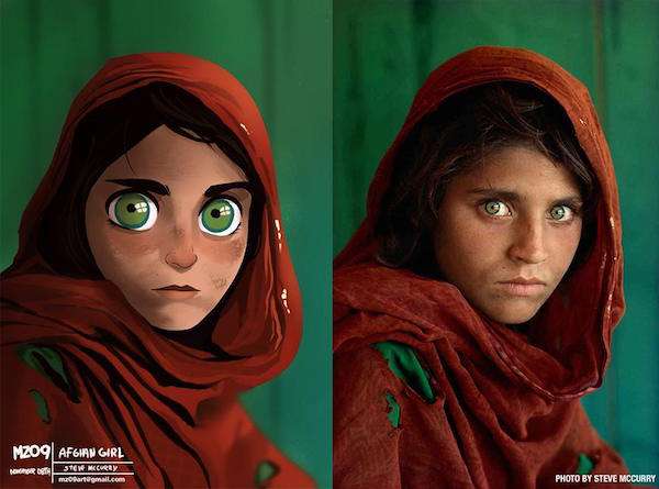 ▼他也重繪了這個國家地理頻道雜誌這個經典封面,小女孩的綠眼睛同樣吸引人。