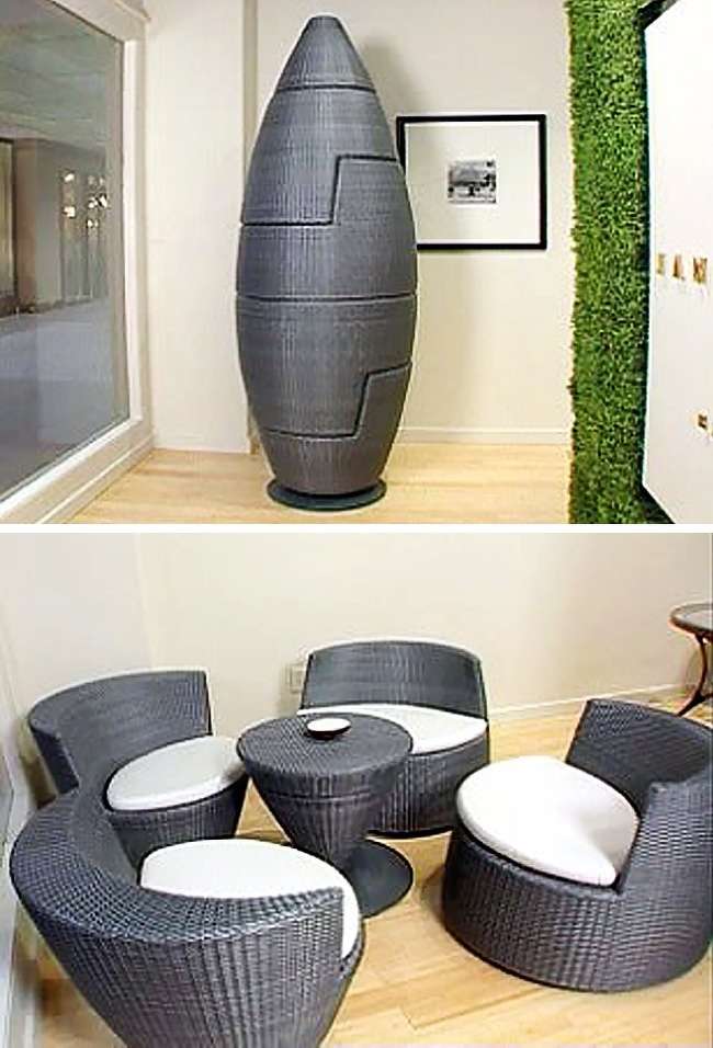 ▼組合起來是火箭型裝飾品,拆分開則是座椅。