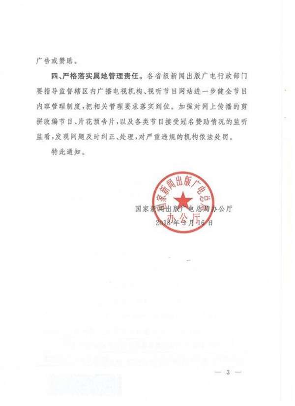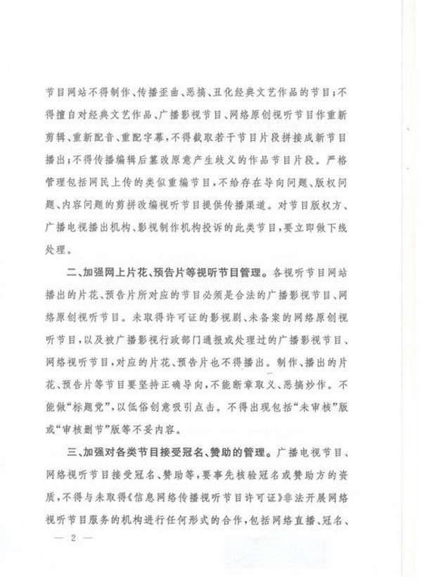 公文內容指出,為了維護健康清朗的網路空間,這類影片都要下架處理。此外,未取得許可的影視作品不得發布預告片或精華片段,若違法者將依法處置。