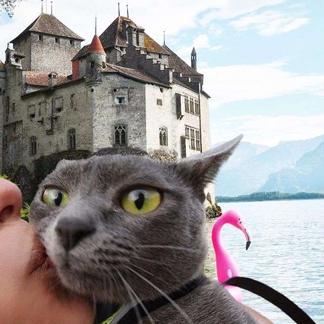 ▼吉莉亞也幫貓咪拍了旅行照,並用「喵喵語」在IG上介紹各地景點,很快就受到大量關注。