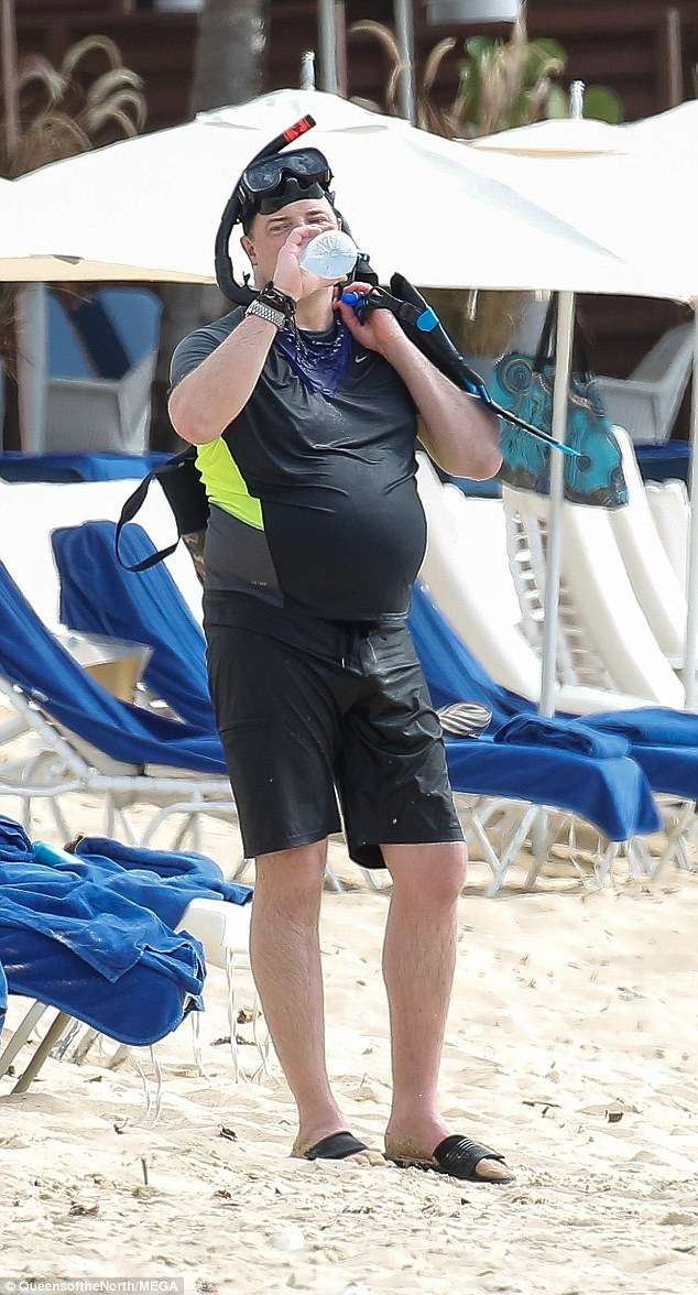 ▼近日他被拍到與孩子在巴貝多度假,穿著浮潛裝備的他挺著超大的啤酒肚,儼然就只是個普通的中年大叔。