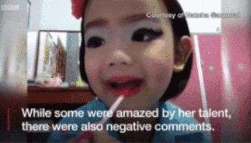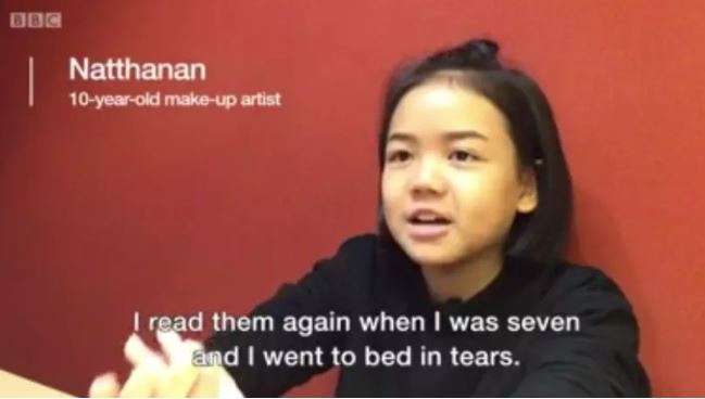 ▼這些批評在Natthanan小小的心靈中其實已經造成傷害了,所以她每天晚上都會看著評論流淚,但她決定做出突破,刪除了那些惡意的留言並且在媽媽的幫助下,報名了「職業化妝培訓課」,開始學習化妝技術。