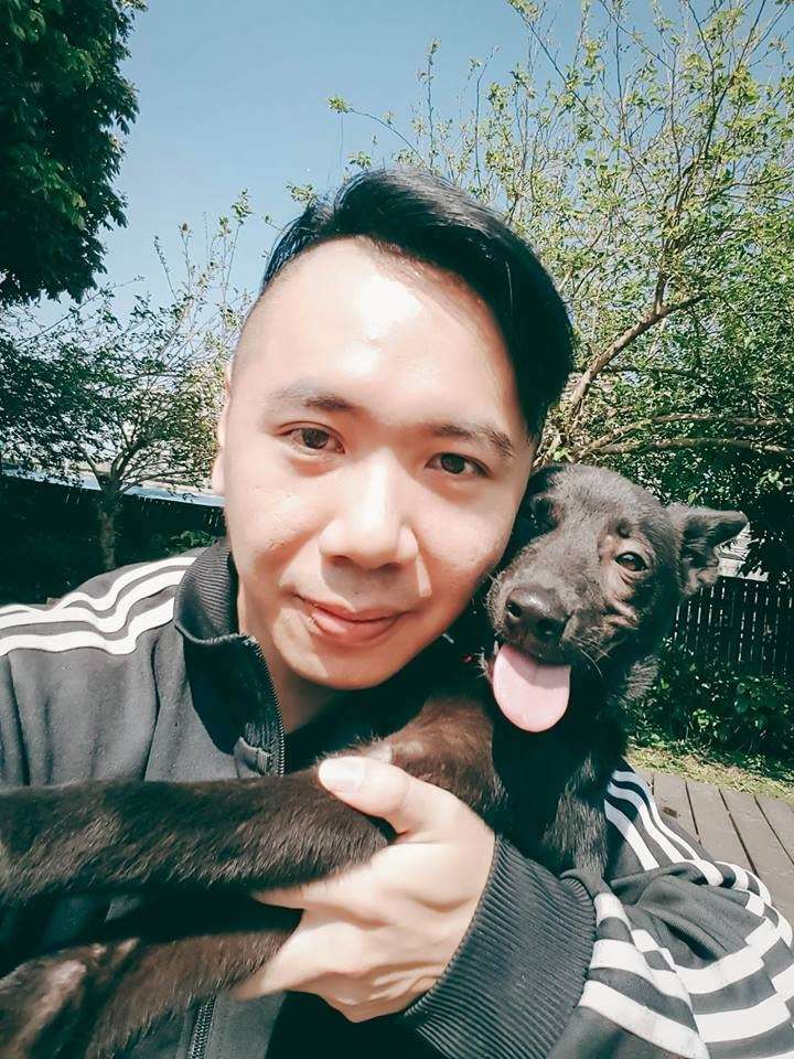 ▼余重諾幫狗狗取名叫「小王子」,還幫牠拍照,帶牠曬太陽,現在的小王子活潑健康,喜歡跟人撒嬌,是個帥氣的單眼皮男生,一身柔亮的黑毛在陽光下熠熠生輝,真的有汪汪界的王子風範呢!