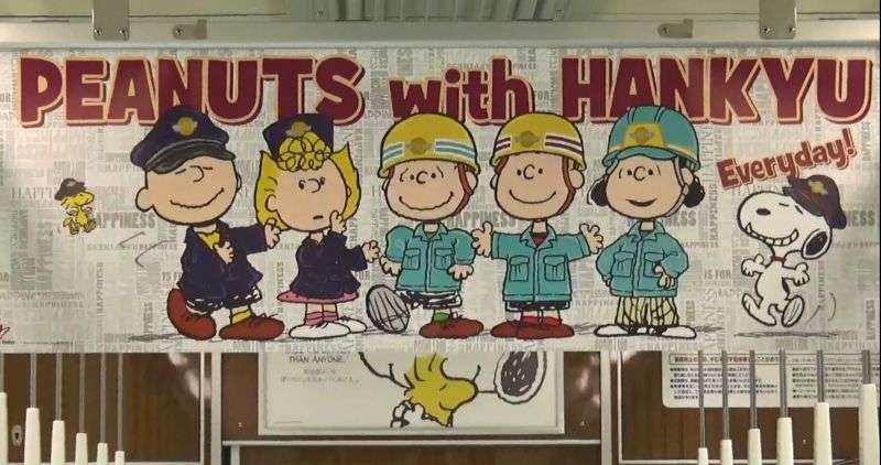 ▼「史奴比&好朋友號」列車行經阪急神戸線、寶塚線、京都線,車內的設計因路線不同而有所調整,每一種都很有特色就對了。
