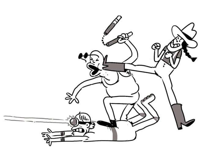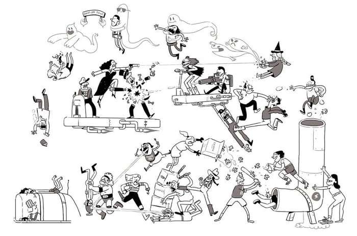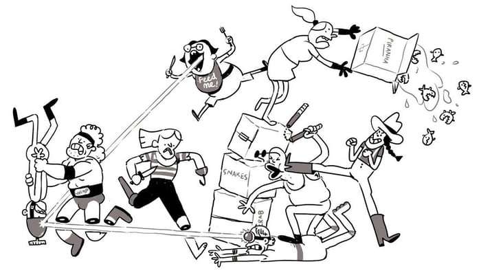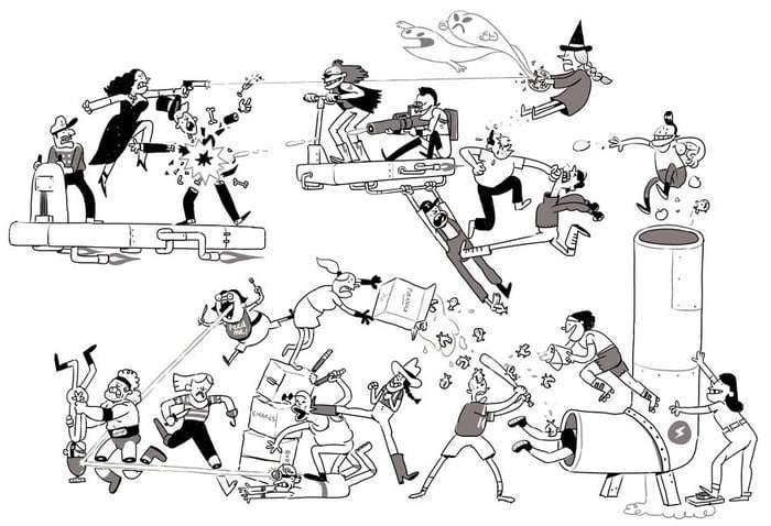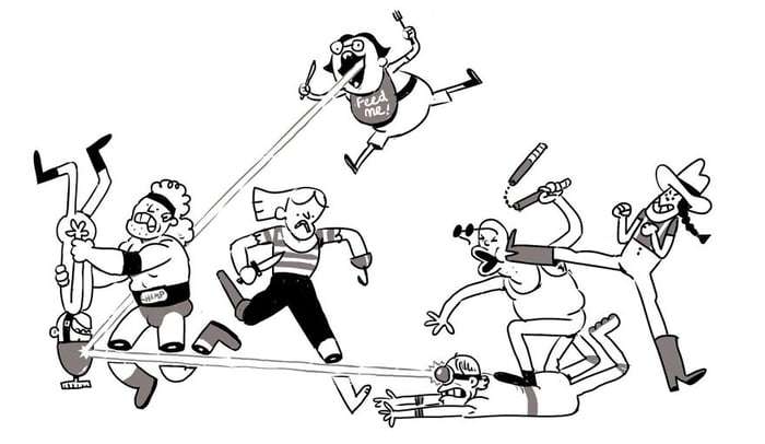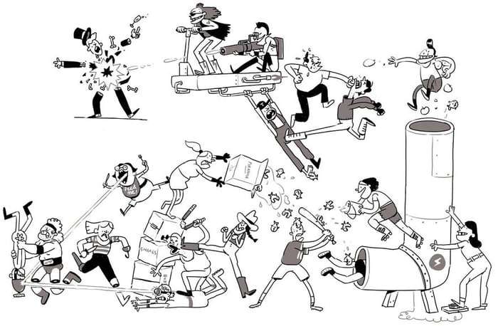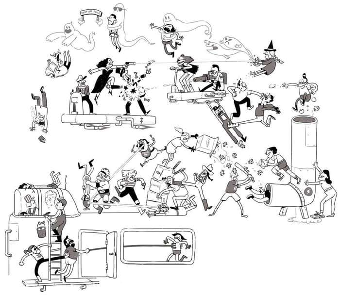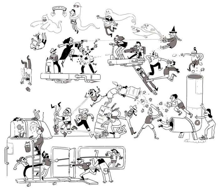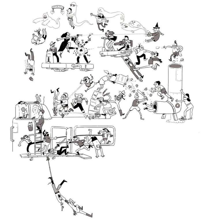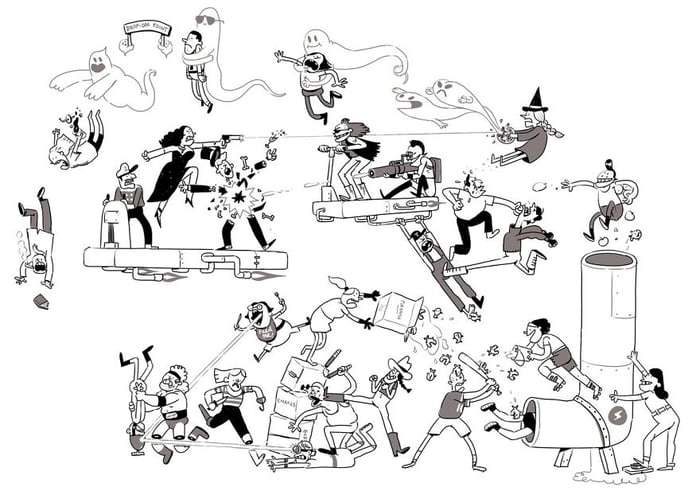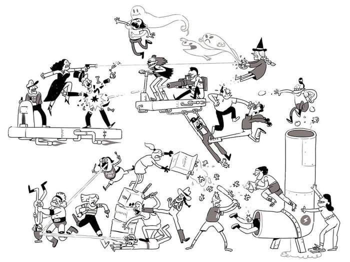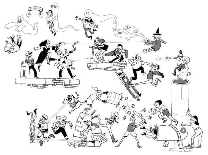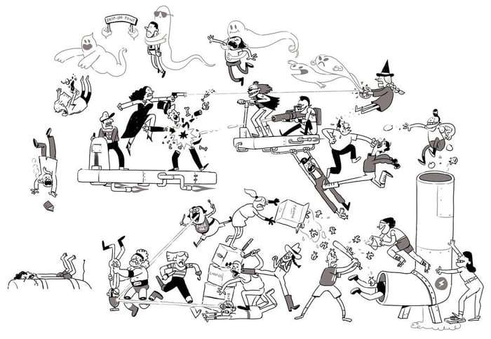 他不想畫重複的人物,所以越畫越難,以後還會在作品中加入更加多元化的角色。對他的「大型衝突現場」有興趣的話,可以去他的推特圍觀~