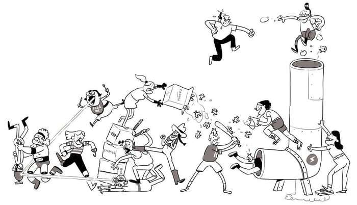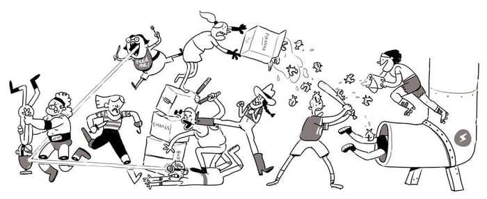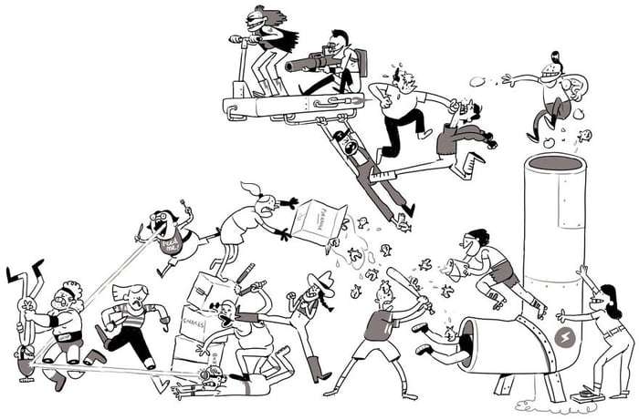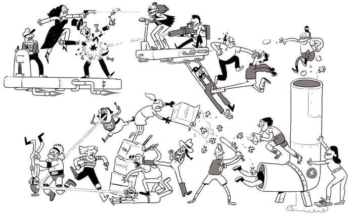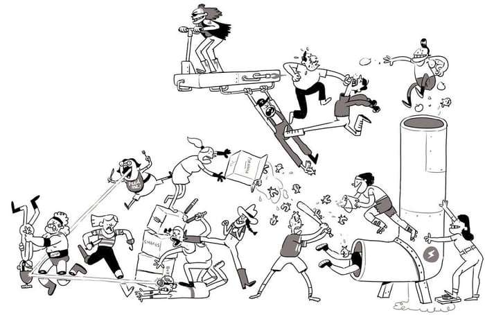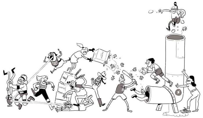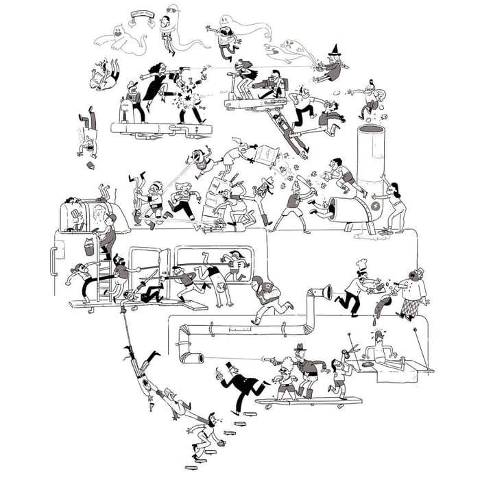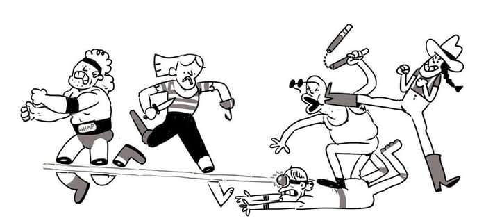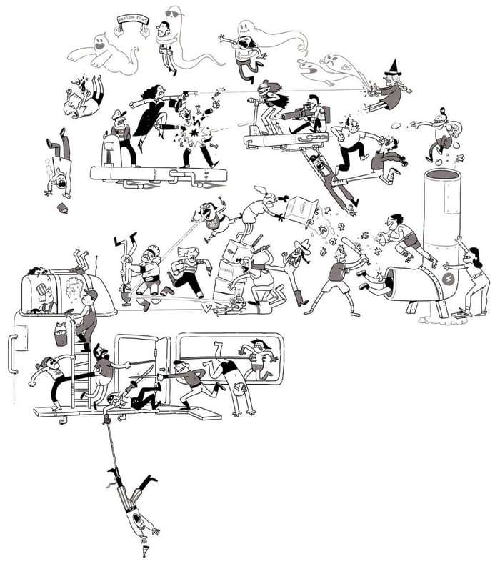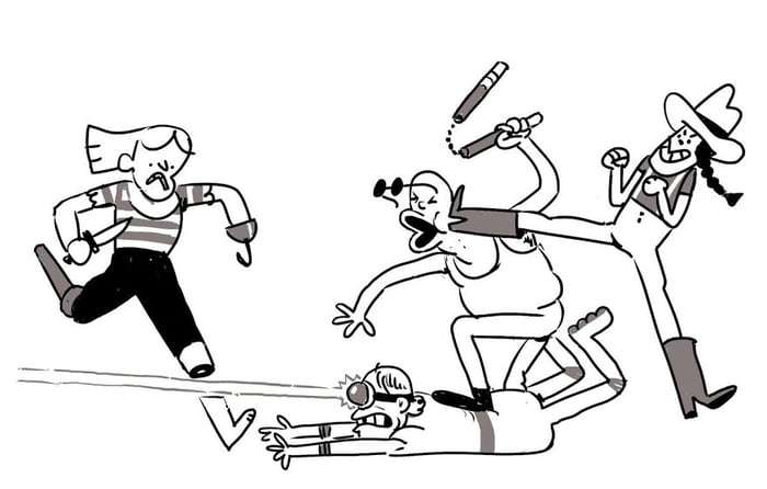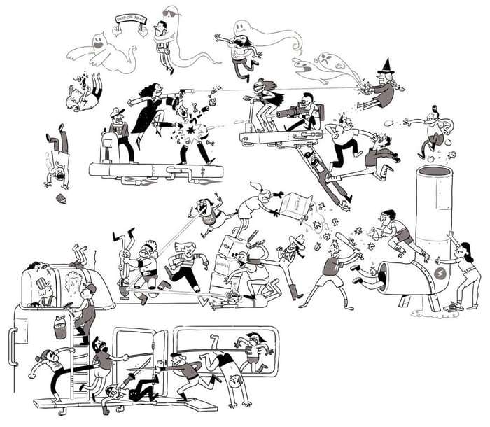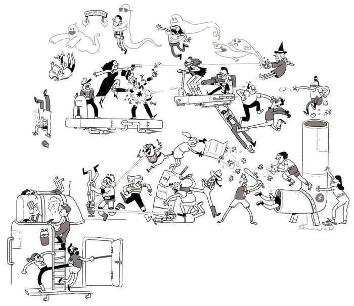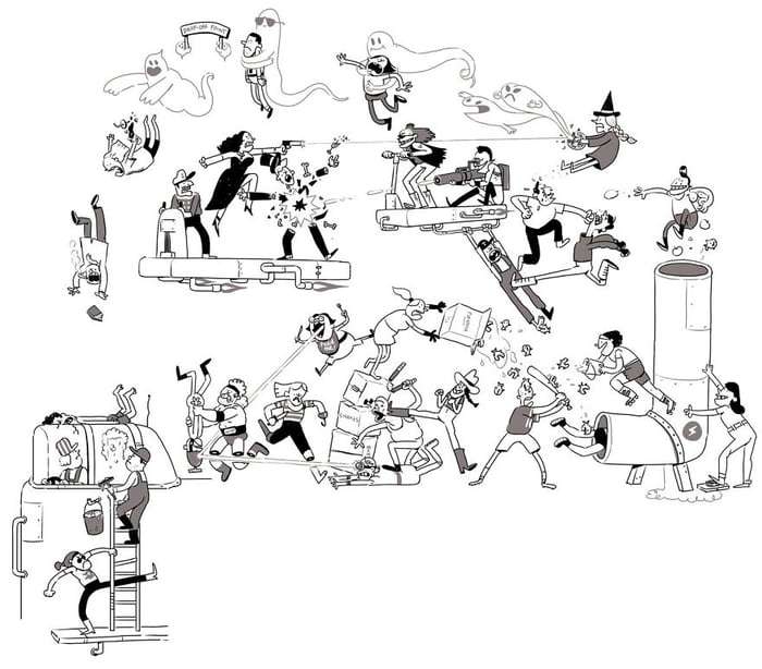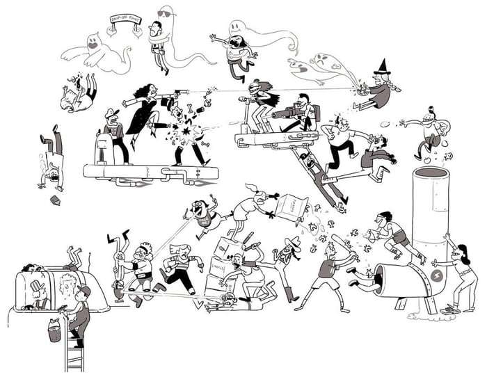 他不想畫重複的人物,所以越畫越難,以後還會在作品中加入更加多元化的角色。對他的「大型衝突現場」有興趣的話,可以去他的推特圍觀~