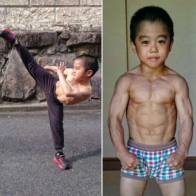 7歲小男孩「全身肌肉炸裂」 之前模仿偶像李小龍爆紅
