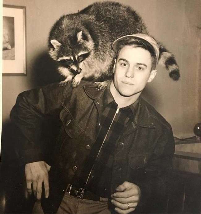 ▼3. 「1950年代,我爺爺跟他的浣熊寵物。」(爺爺跟明星一樣帥啊!)