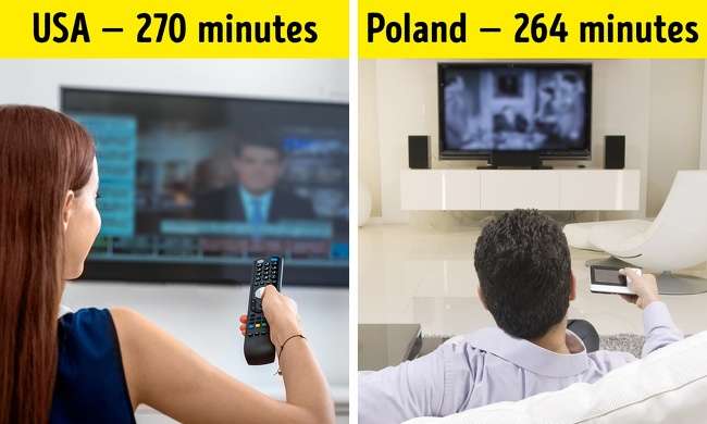 ▼美國人每天看電視的時間為4個多小時:每天,美國人花費1/5(270分鐘)的時間看電視;波蘭人每天看電視的時間要少一些,為264分鐘。