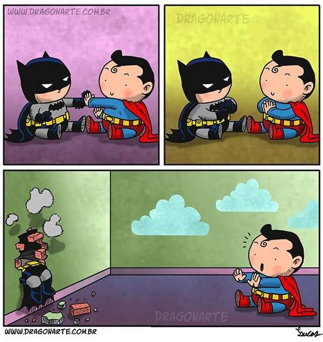 ▼蝙蝠俠的寶寶和超人的寶寶一起玩耍。