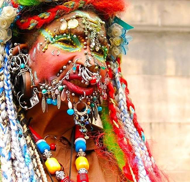 ▼世界上佩戴最多配件的女人:Elaine Davidson。