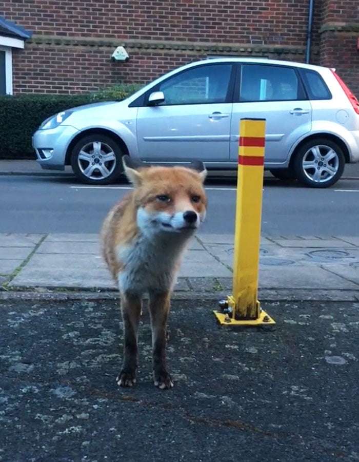 2018年03月31日日前,國外一名男網友在街頭看到了一隻超漂亮的狐狸。那隻狐狸萌萌的,他忍不住拿出手機拍攝,狐狸非常謹慎,但很友好,非但沒有跑掉,還慢慢靠近他,好像要跟他玩。