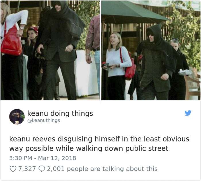 ▼基努李維用最顯眼的方法來掩飾自己。