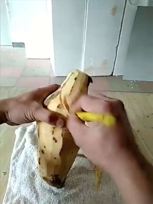 ▼要在食材上雕刻,要先根據形狀、質地,選擇雕刻的內容,精湛的刀工可以讓皮肉呈現深淺的顏色、層次變化。比如這顆大大的番薯,橢圓的形狀,黃色的內裡,雕一個壽星老最適合不過了。