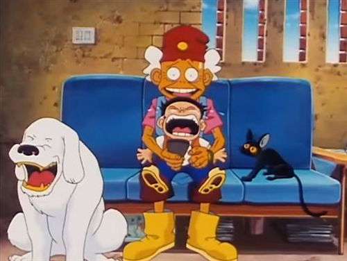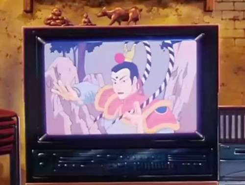 ▼在《魔法阿媽》裡,豆豆因為離開媽媽而大哭,阿媽為了安慰他便打開電視,也帶出一連串當時的流行人物和時事。