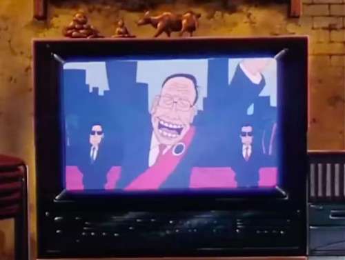 ▼當時也正好面臨台灣的縣市長選舉,畫面上疑似出現「微笑老蕭」蕭萬長,1997年他辭去嘉義市立委職位入閣,成為台灣首位行政院長。