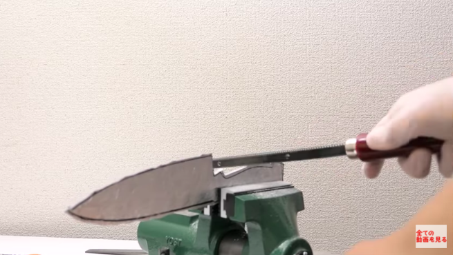 ▼再安裝木把手,一把刀就完成了,和真正的刀子相比毫不遜色。