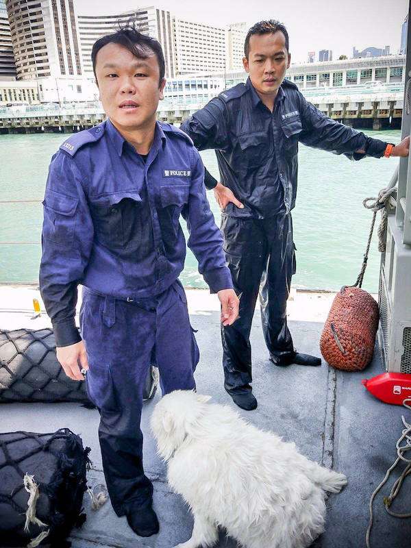 ▼當時警方接獲通報,得知尖沙嘴有一隻狐狸犬落水,載浮載沉地游泳。