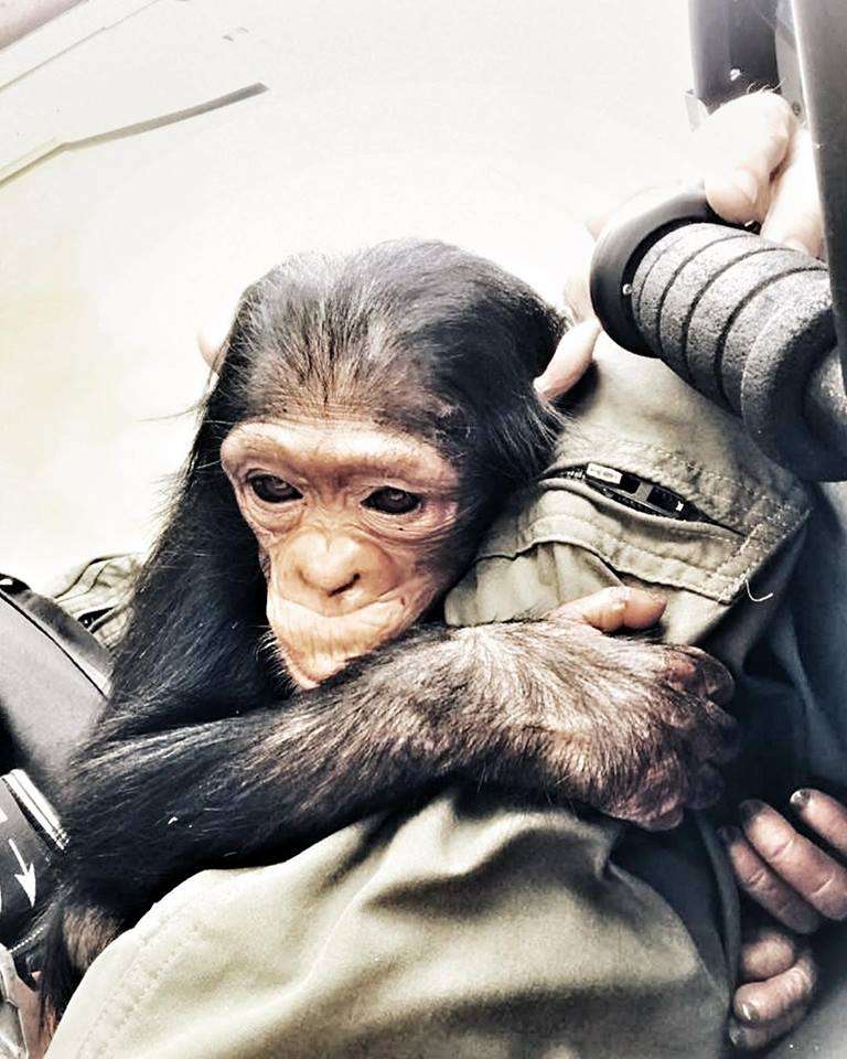 黑猩猩寶寶的媽媽遭獵殺 暖心飛行員及時護送回家 感嘆:牠應該跟媽媽一起的