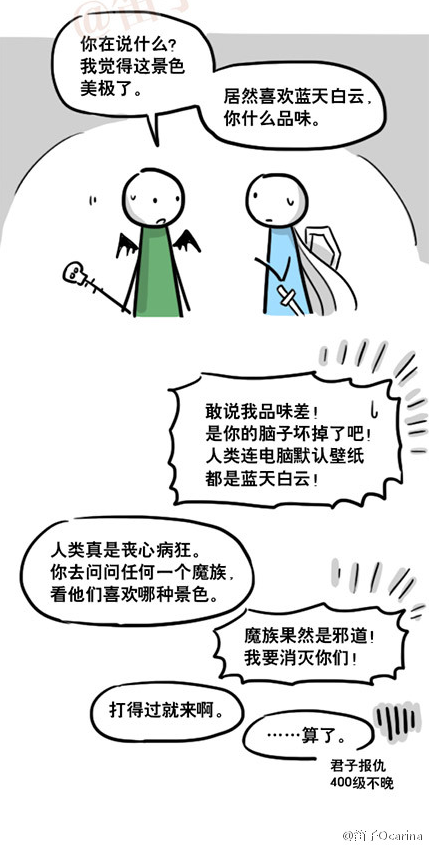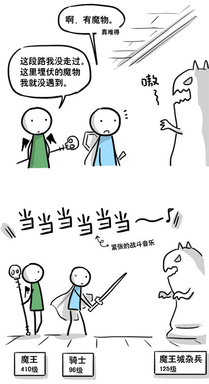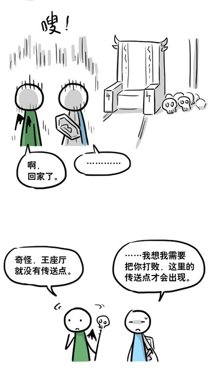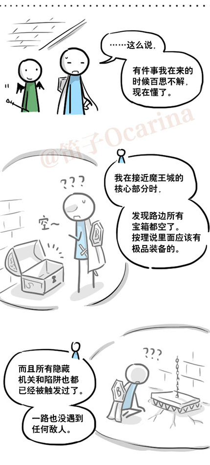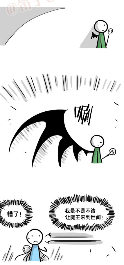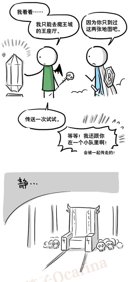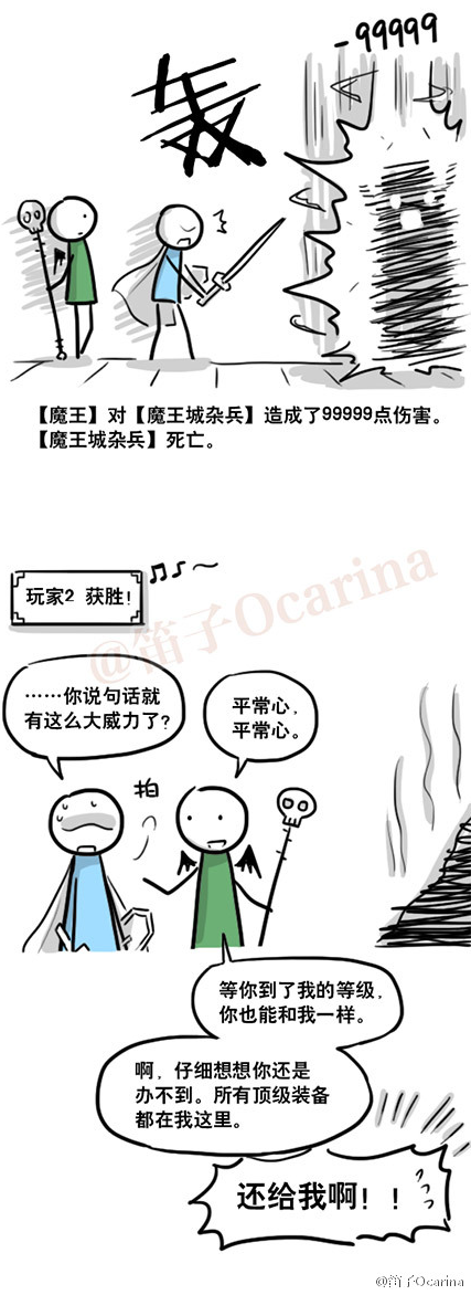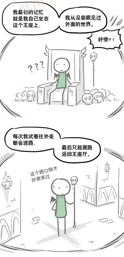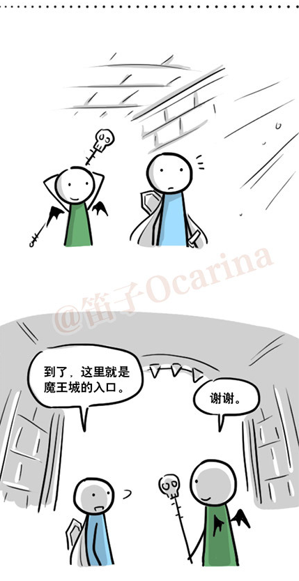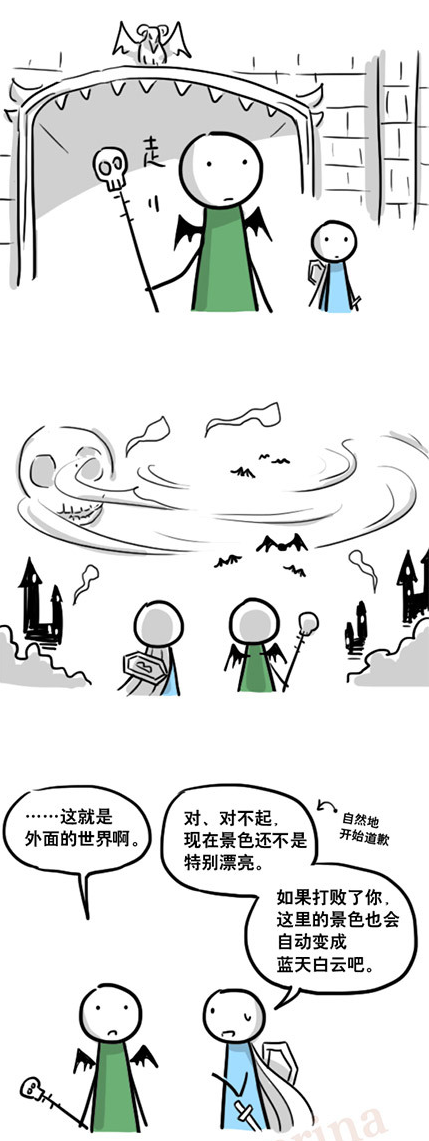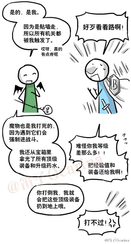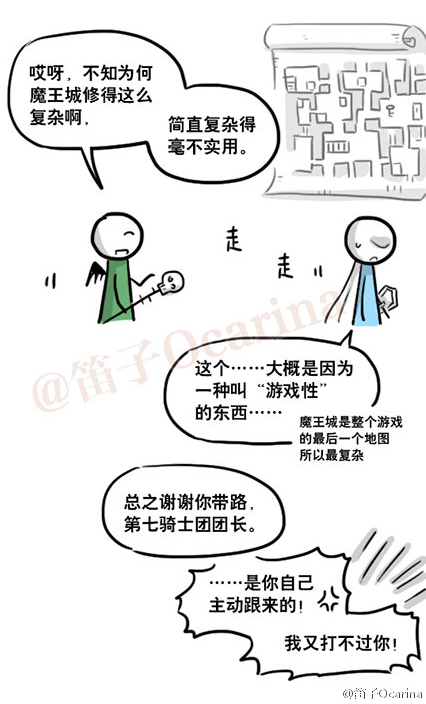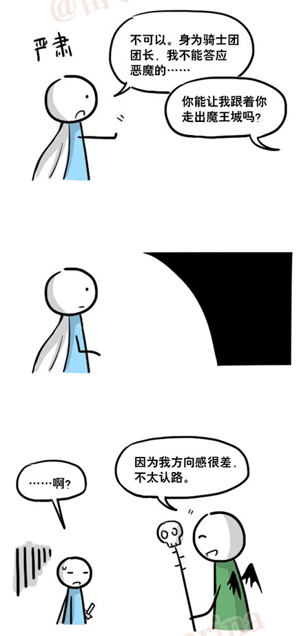▼原來魔王小綠是個「路痴」。但是因為魔王的級別太高把所有的裝備都拿走了,小藍也只能默默接受……