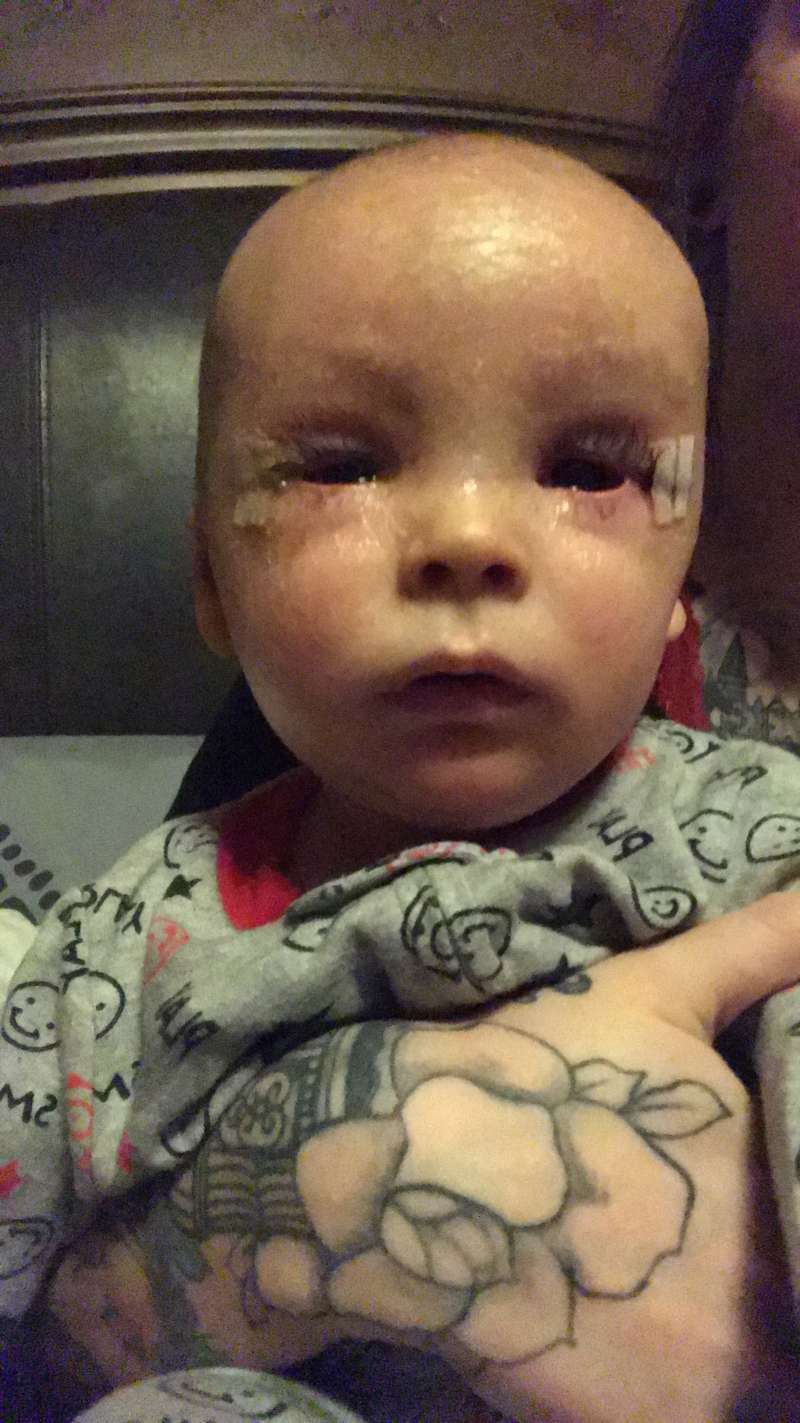 ▼Shai-Anne說:「醫生沒有給我們有效的建議,只是讓我們不要給Carter洗澡、不要讓他的皮膚裸露出來,帶他按時回診。我們把大麻油放進自製的面霜裡,短短7個月,他就大變樣,眼睛能夠閉上,連頭髮都長了出來。」
