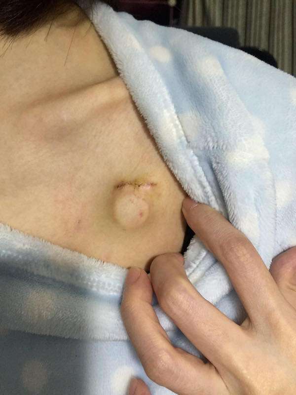 ▼在跟人工血管共處兩年多的時間後,她終於可以跟它說掰掰,代表狀況有所好轉,「這個印記,做過一樣治療的人就會知道。我想說的是,現在正在經歷的你(妳)們不要害怕!就當作是一進化人的按鈕,相信它總有一天會離去,然後迎接的是肉體和心靈的升級!祝所有的鬥士們都能拿下這場戰役!」