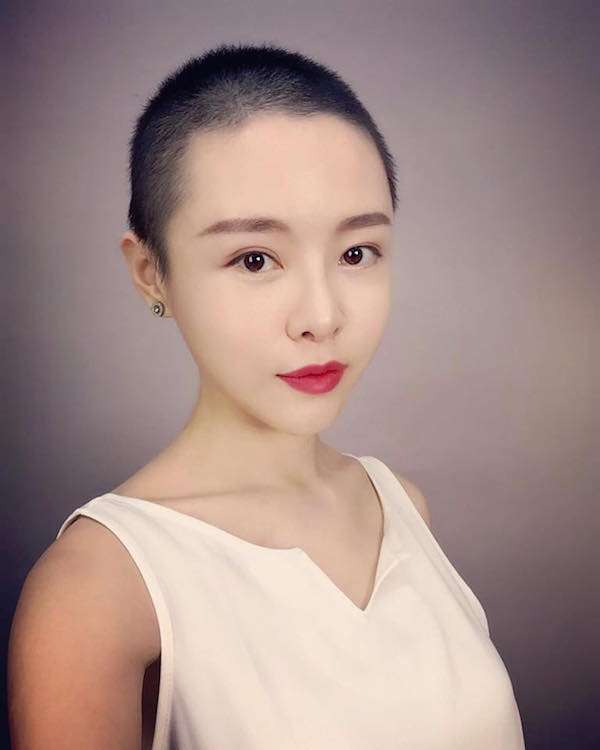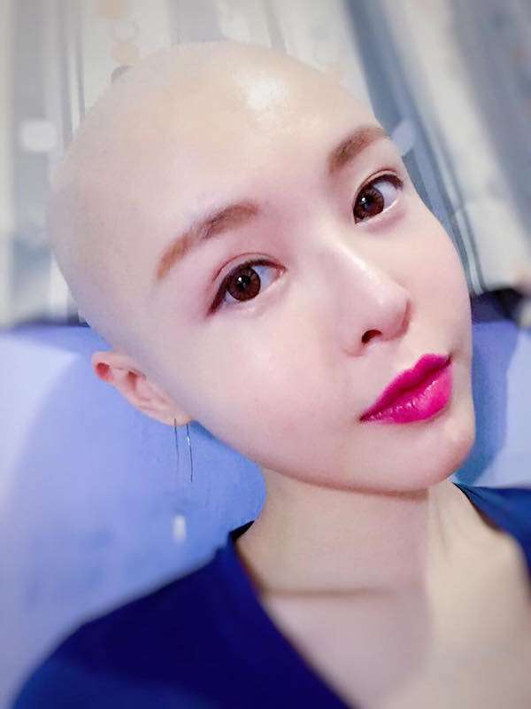 ▼為了做化療,李沁凝不得不剪掉留了多年的長髮,但她也非常樂觀地以光頭外貌示人,還畫上大紅唇,表示「這樣很搭」。這2年來,她從不介意露出手術的疤痕,反而是路人看到會嚇到,才把它遮起來。