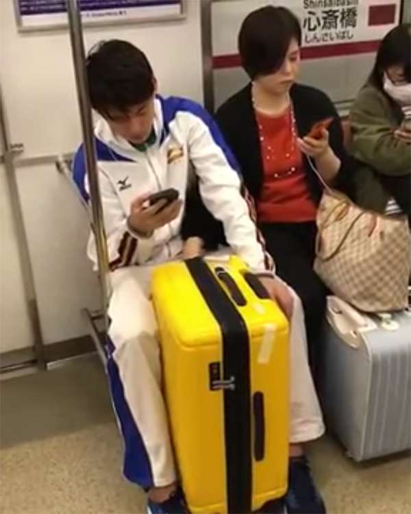 日本人玩這麼開?一對母女在搭乘地鐵時,媽媽淡定地一手看著手機,另一手竟直接放在旁邊兒子的褲檔前,不過從畫面上來看,媽媽摸的地方剛好被前方的行李箱擋住,最後這幕也讓網友笑翻!