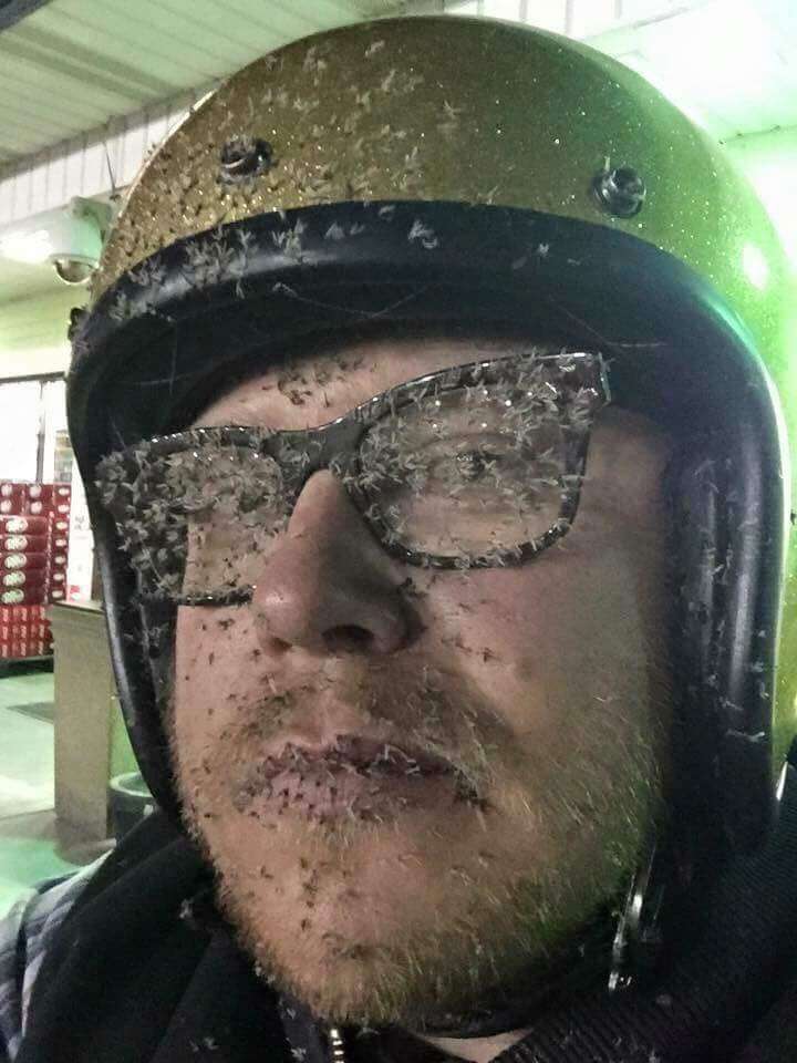 ▼近日在臉書社團「爆廢公社二館」有一名網友分享了自己在傍晚時分,騎機車從台中經過西濱快速道路(台61線)回台南時遇到的「插曲」,原來當他好不容易抵達目的地後,赫然發現安全帽上面全都是蚊子、昆蟲等密密麻麻的屍體,這張照片也引發了網友熱烈的討論。