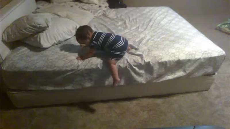 機智小嬰兒用枕頭當「肉墊」從床上安全軟著陸 爸媽驚呼:「天才兒子!」