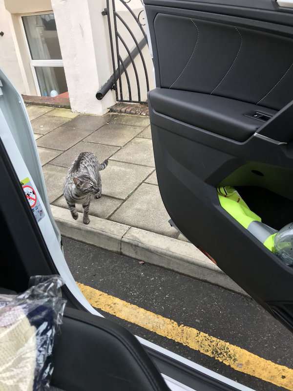 貓咪永遠會做出讓你意想不到的事,英國一位網友丹尼爾(Daniel Sherlock)本來要開車出門辦事,卻在離家不遠處發現偷偷「逃家」的愛貓,而愛貓被他抓包的心虛表情立刻在網上紅了!