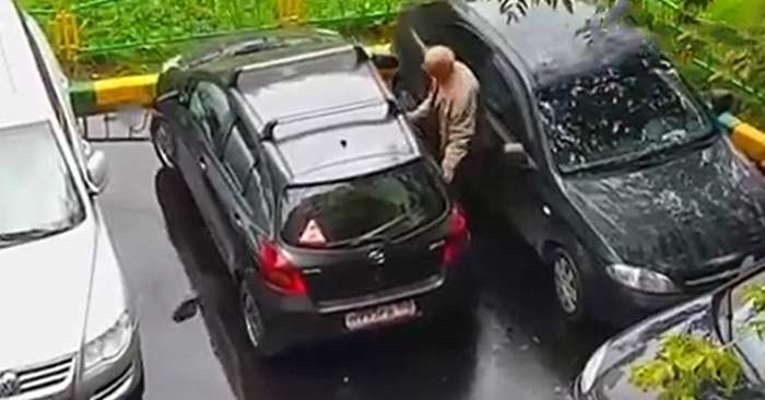 老爺爺用自己的「獨門秘訣」成功把車倒出來,整個過程就像在推手推車一樣。老爺爺為了不傷害旁邊的車輛親自推車,這樣有善心的老爺爺值得大家尊敬!